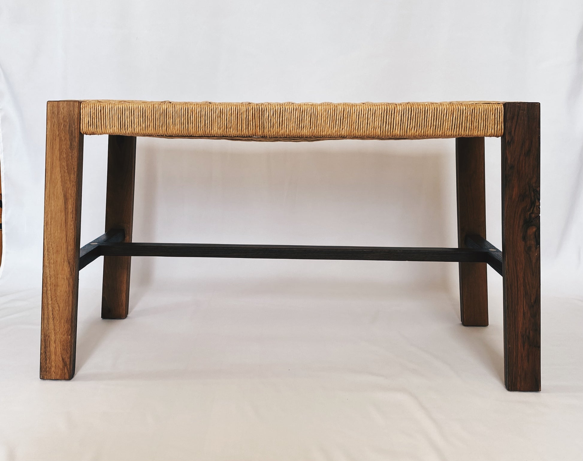Diese Sitzbank vereint edles Nussbaumholz mit handgewebter Papierkordel zu einem robusten und zugleich ästhetischen Möbelstück. Die natürliche Maserung des Nussbaums sorgt für eine warme Optik, während die Papierkordel für strapazierfähigen, komfortablen Sitzkomfort sorgt. Durch die sorgfältige Handarbeit entsteht ein langlebiges Designobjekt, das sowohl im modernen als auch im klassischen Ambiente glänzt. Ideal für anspruchsvolle Räume, in denen Materialqualität und Handwerkskunst geschätzt werden.