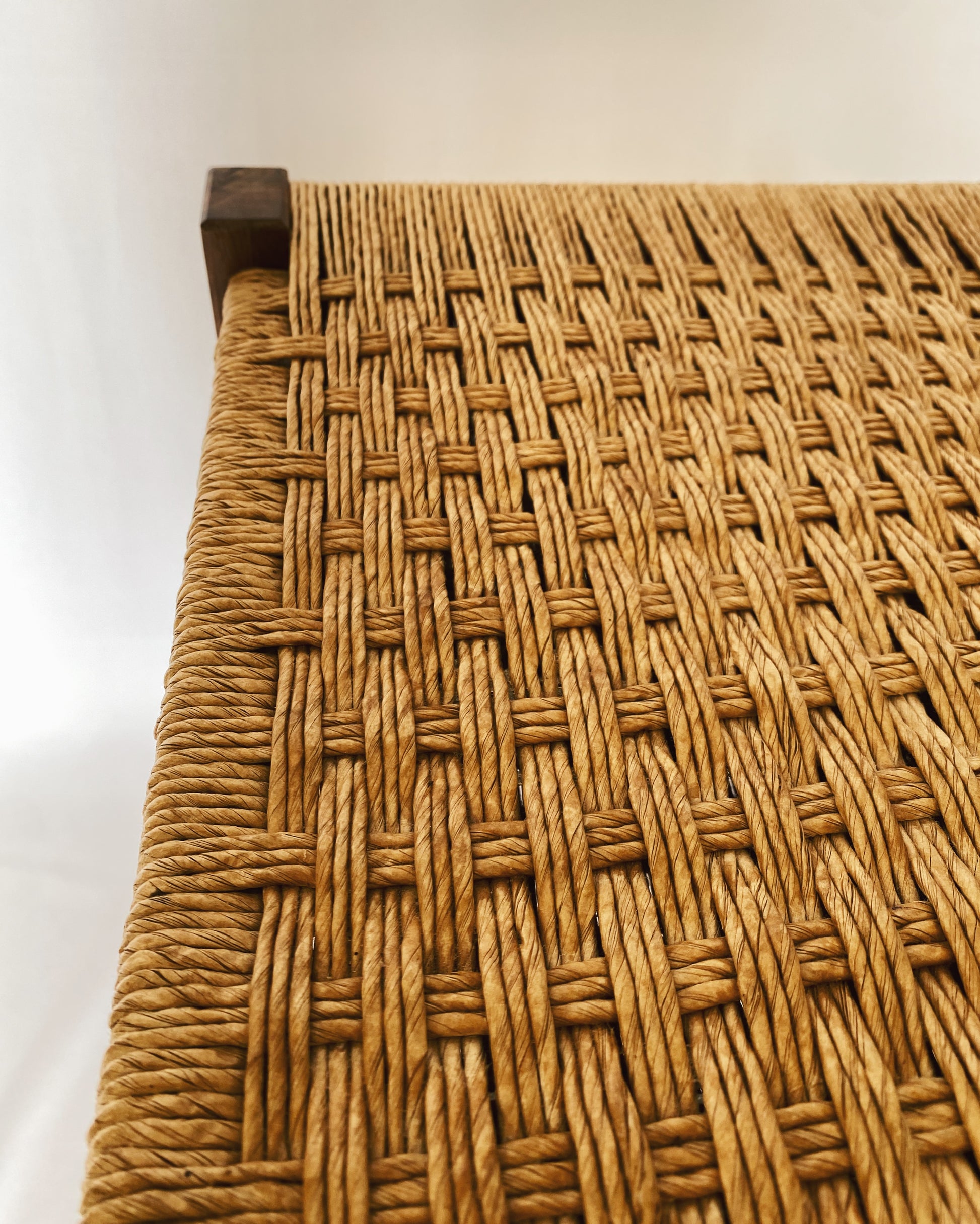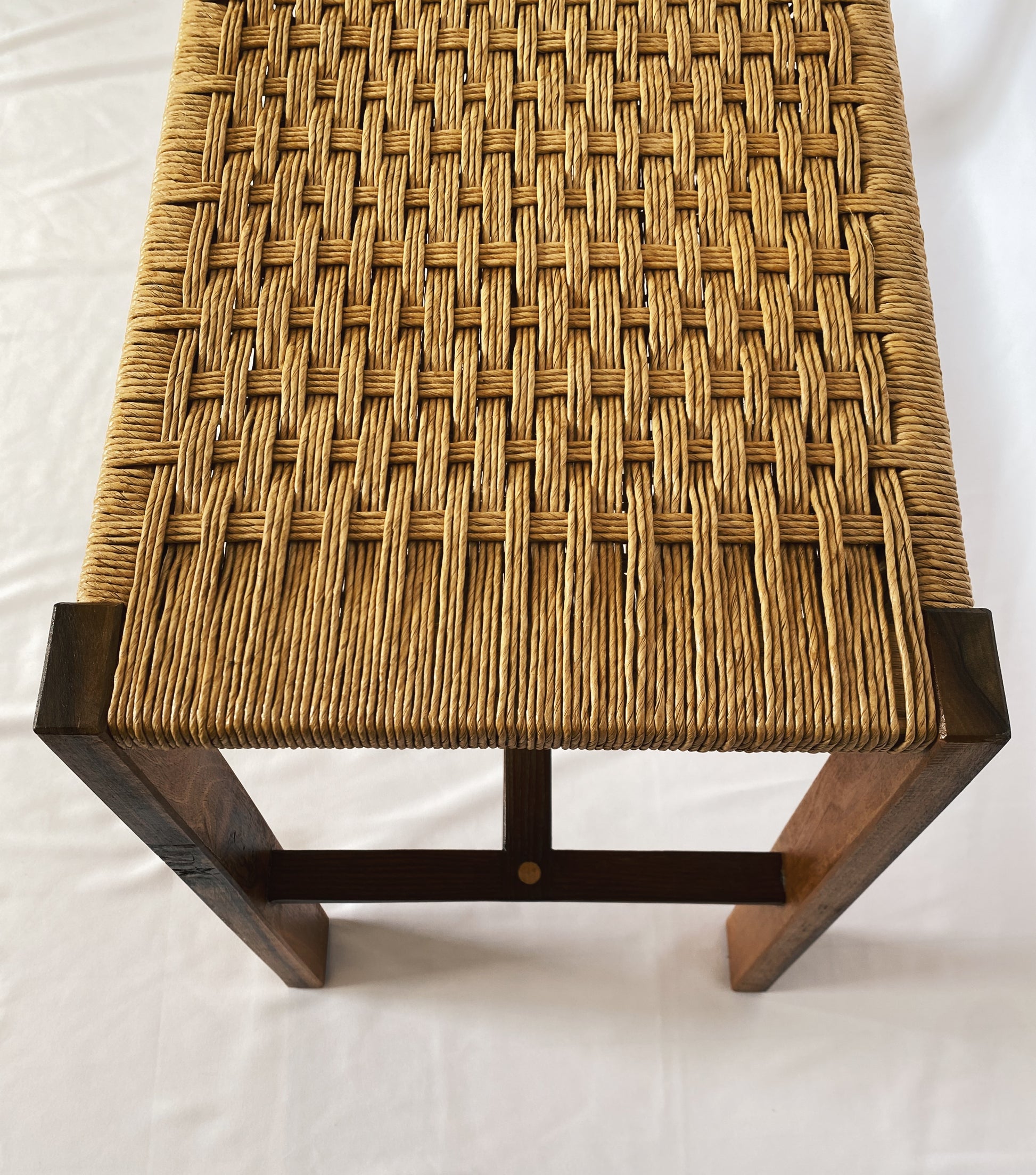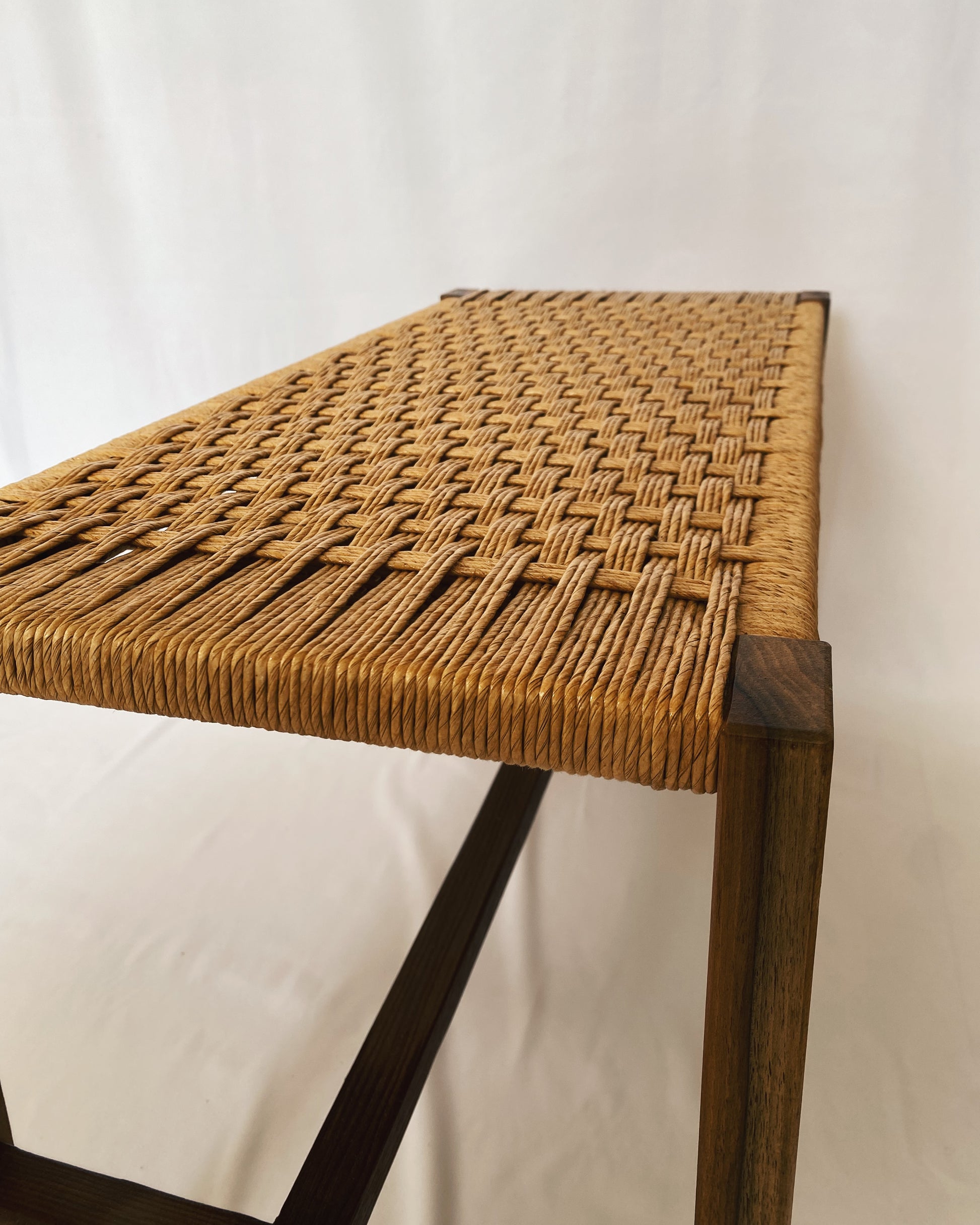 Handgewebte Sitzbank aus Nussbaum und Papierkordel