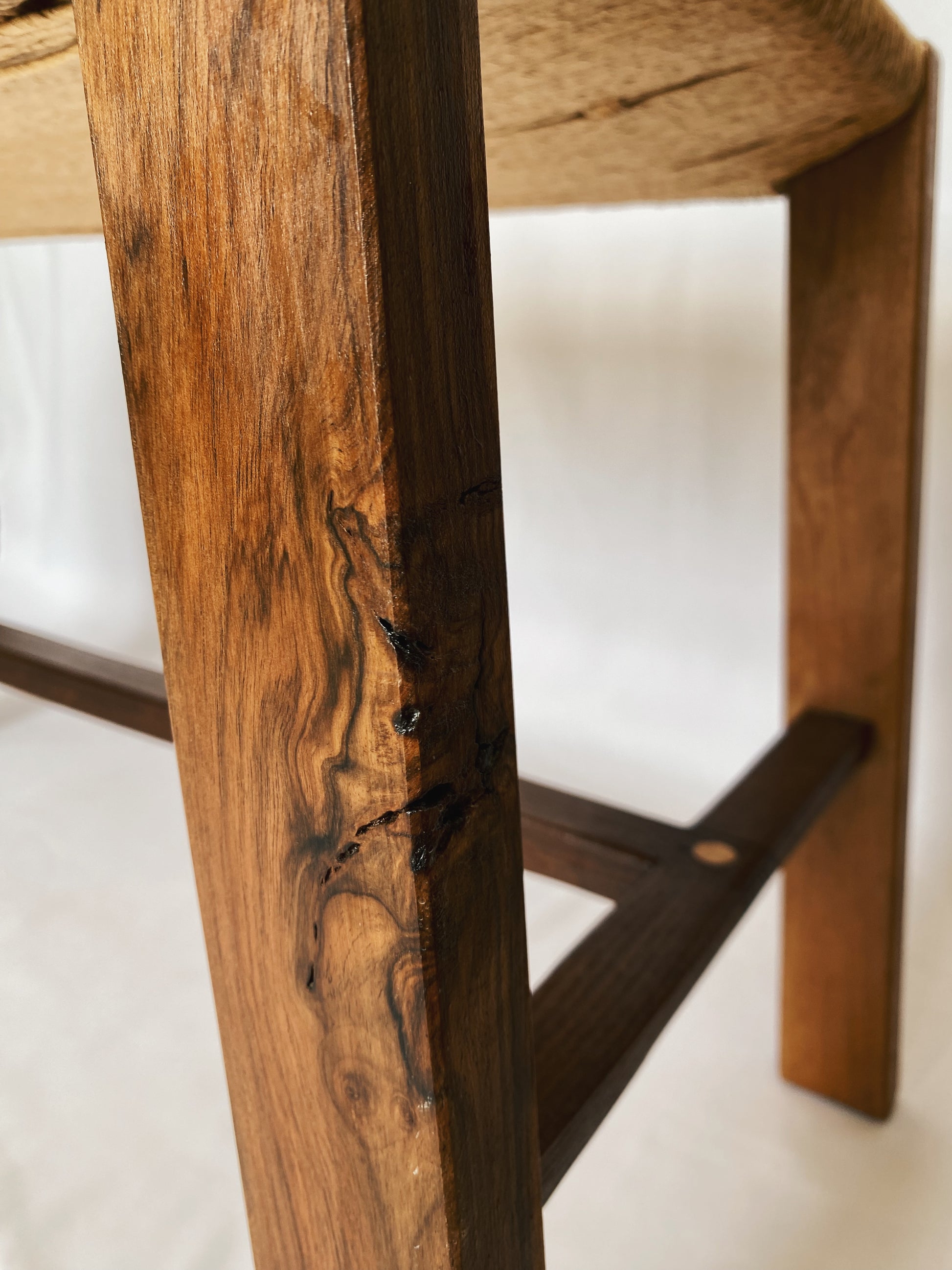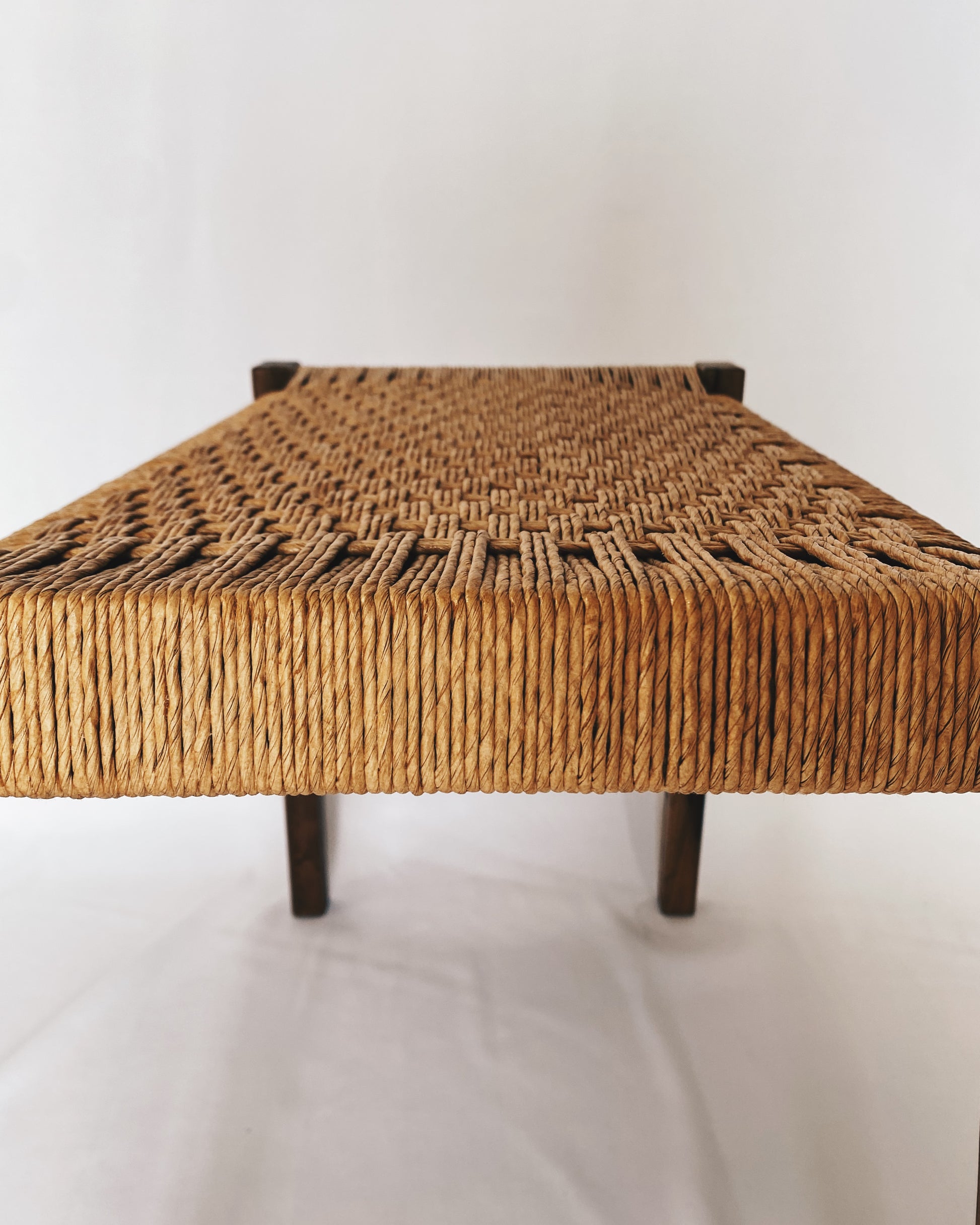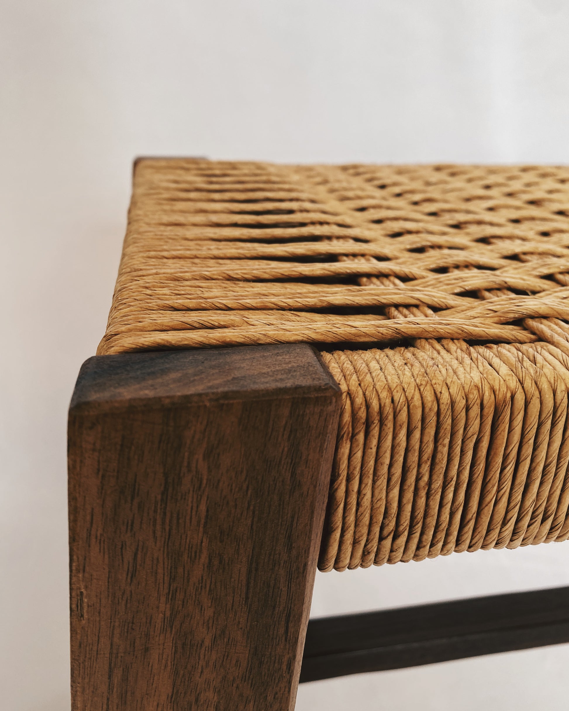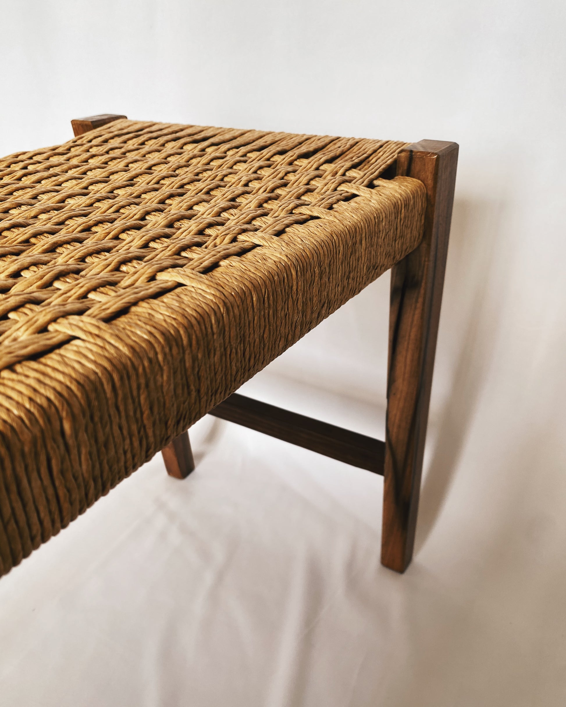 Handgewebte Sitzbank aus Nussbaum und Papierkordel